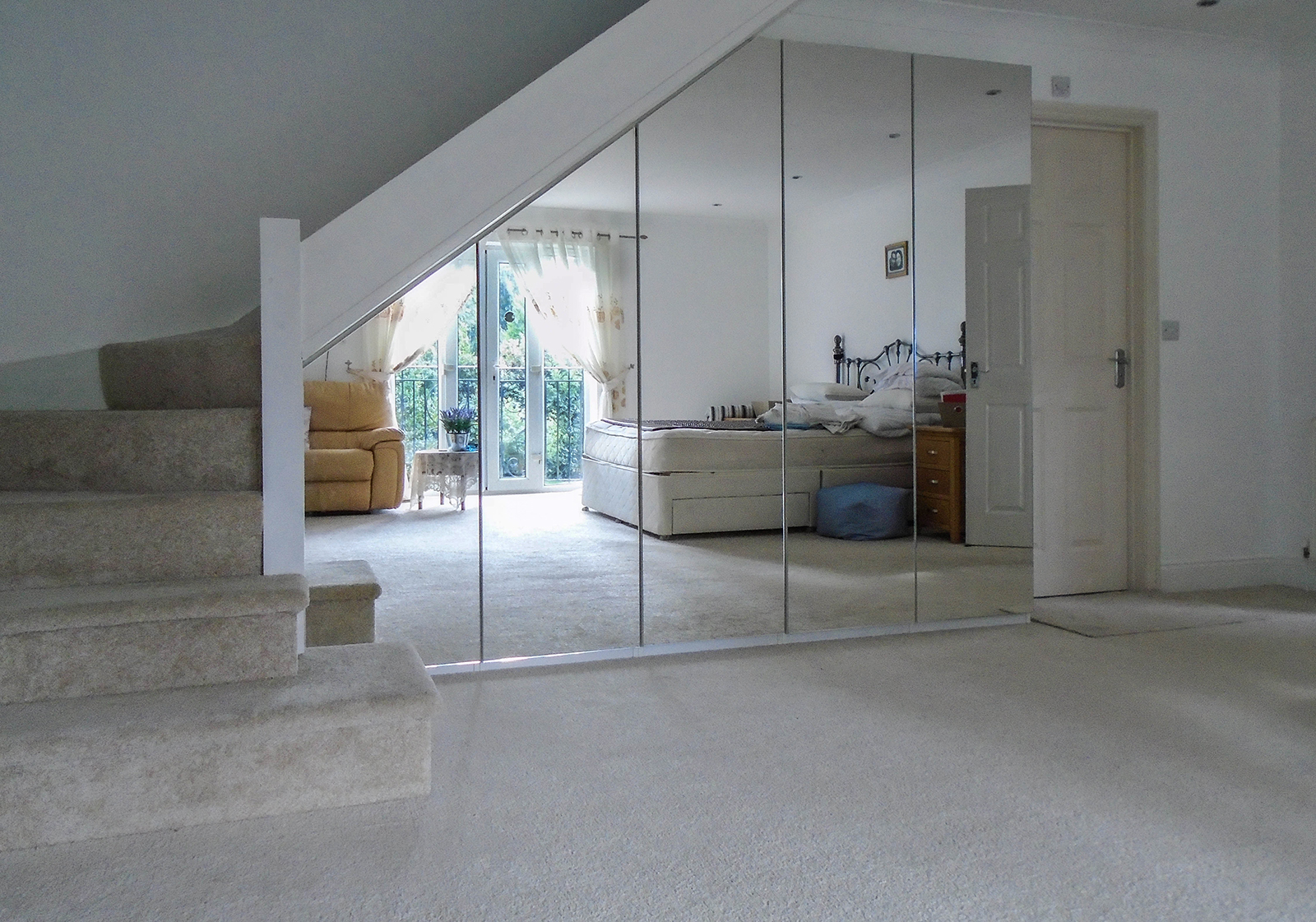 mirrored door full wall bedroom wardrobe under the slope hinged doors push to open handles free.jpg