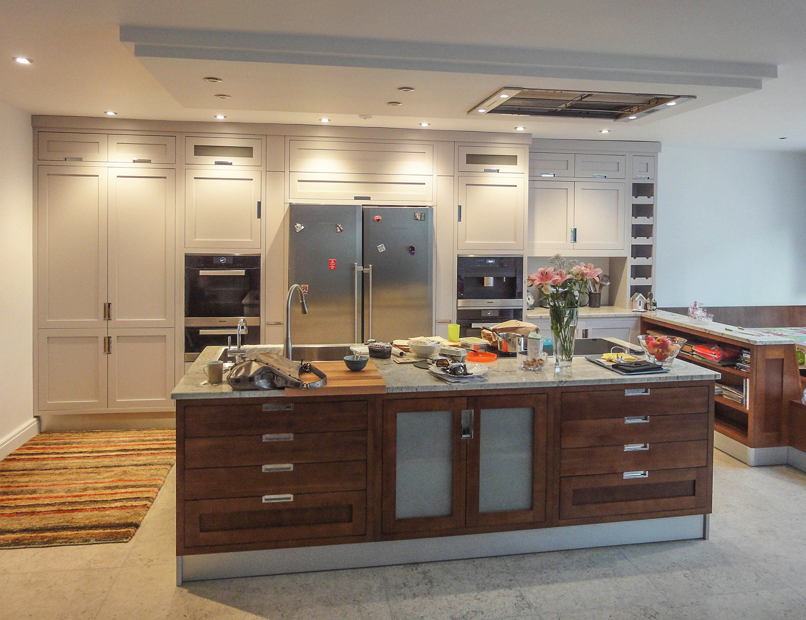 modern shaker style large kitchen in walnut and grey painted.jpg